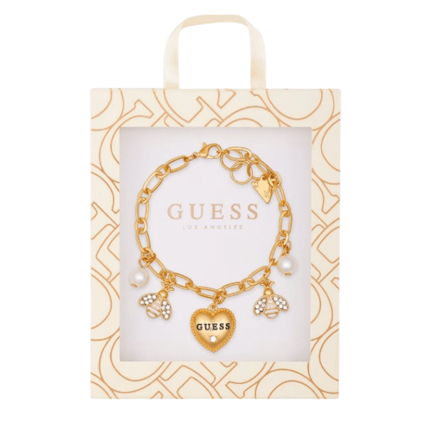 - Charm central en forma de corazón con el logotipo “GUESS”.
