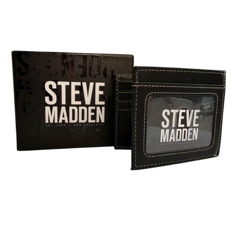 Incluye un compartimento transparente con el logo de Steve Madden, ideal para su identificación o licencia.