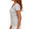 Dale un toque sofisticado a tu outfit diario con esta camiseta gris de mujer con cuello en V. Confeccionada en algodón suave de alta calidad, esta prenda combina comodidad y estilo minimalista. El bordado discreto en el pecho añade un detalle distintivo y elegante. Ideal para usar sola o como base en looks. Perfecta para cualquier ocasión: desde un día casual hasta una salida relajada con amigas.