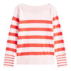 Dale un toque fresco y femenino a tu look con este suéter de rayas en tonos rosado y coral. Con un diseño moderno y cuello tipo barco, su tejido suave y ligero ofrece máxima comodidad sin perder elegancia. Los puños y el dobladillo acanalados aportan un ajuste perfecto, ideal para combinar con jeans, faldas o pantalones blancos para un look casual chic.